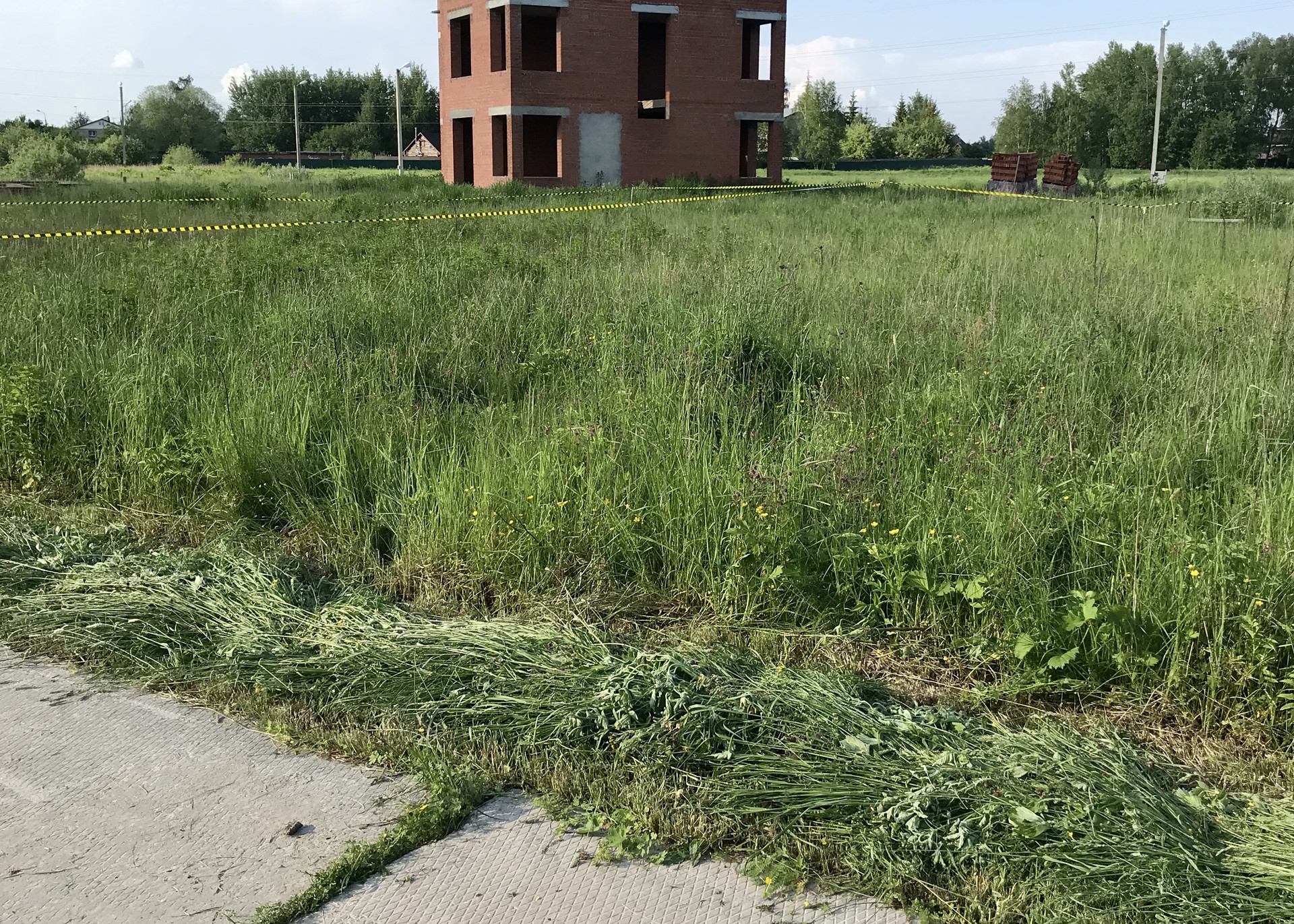 Чистка тротуарной плитки триммером