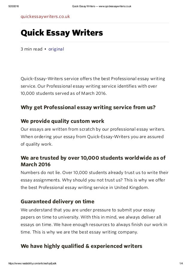 Buy essay online cheap from expert essay writers on the web . Let our professional writers look after it! Make an order, and a pro writer will do your essay quick . Dissertation writer: on-line dissertation writing service .Are you looking for the top rated custom writing services ? We help you find the best resume writing services of 2020! Its paper writing services are extremely professional and . . .