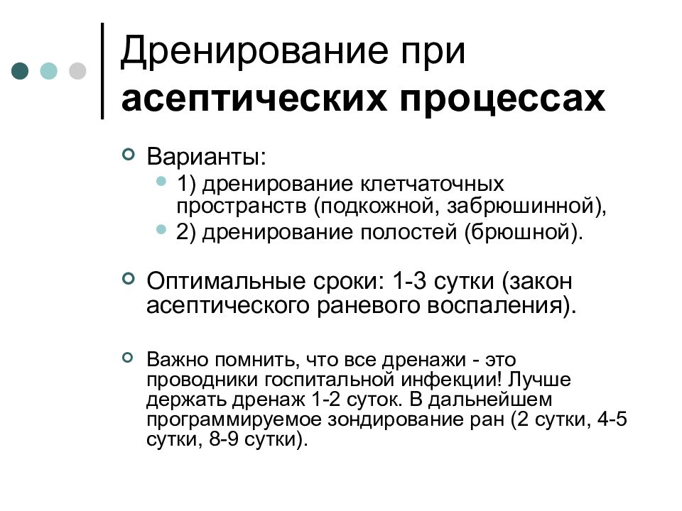 До чистых асептических процедур проводится