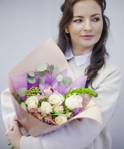 Поочередно устанавливаем цветы в корзинку . Делать это нужно максимально аккуратно, чтобы все детали были распределены равномерно . В результате композиция из роз выглядит так, как на фото .