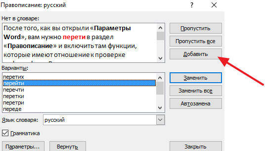 Добавить в словарь в ворде