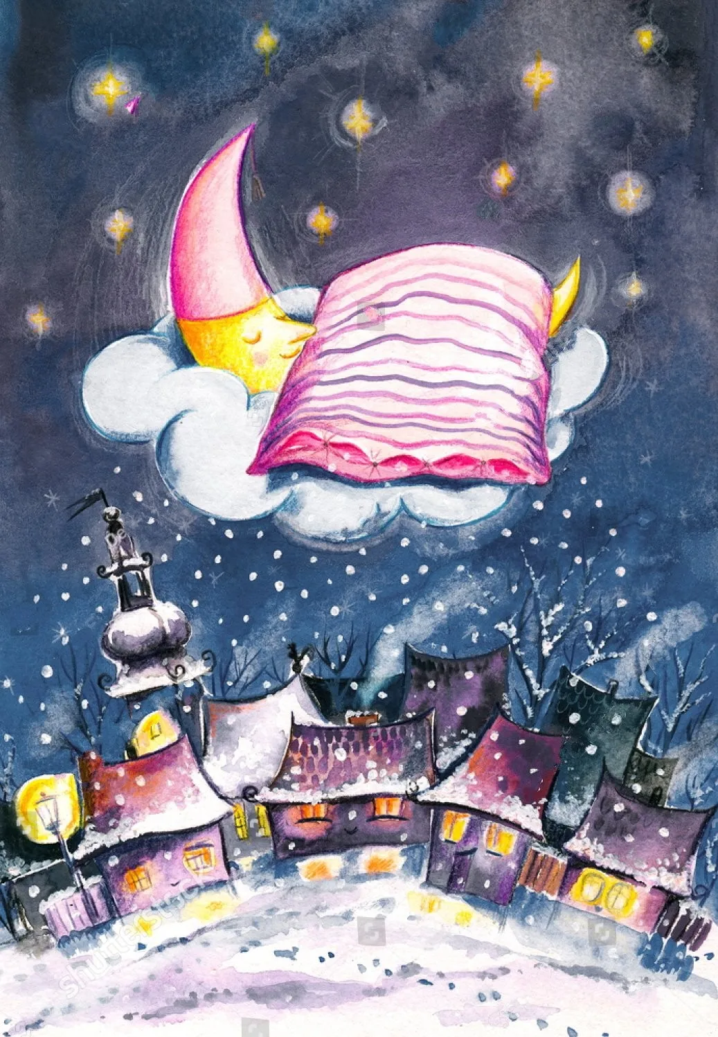 Доброй Ночи Акварель Картинки