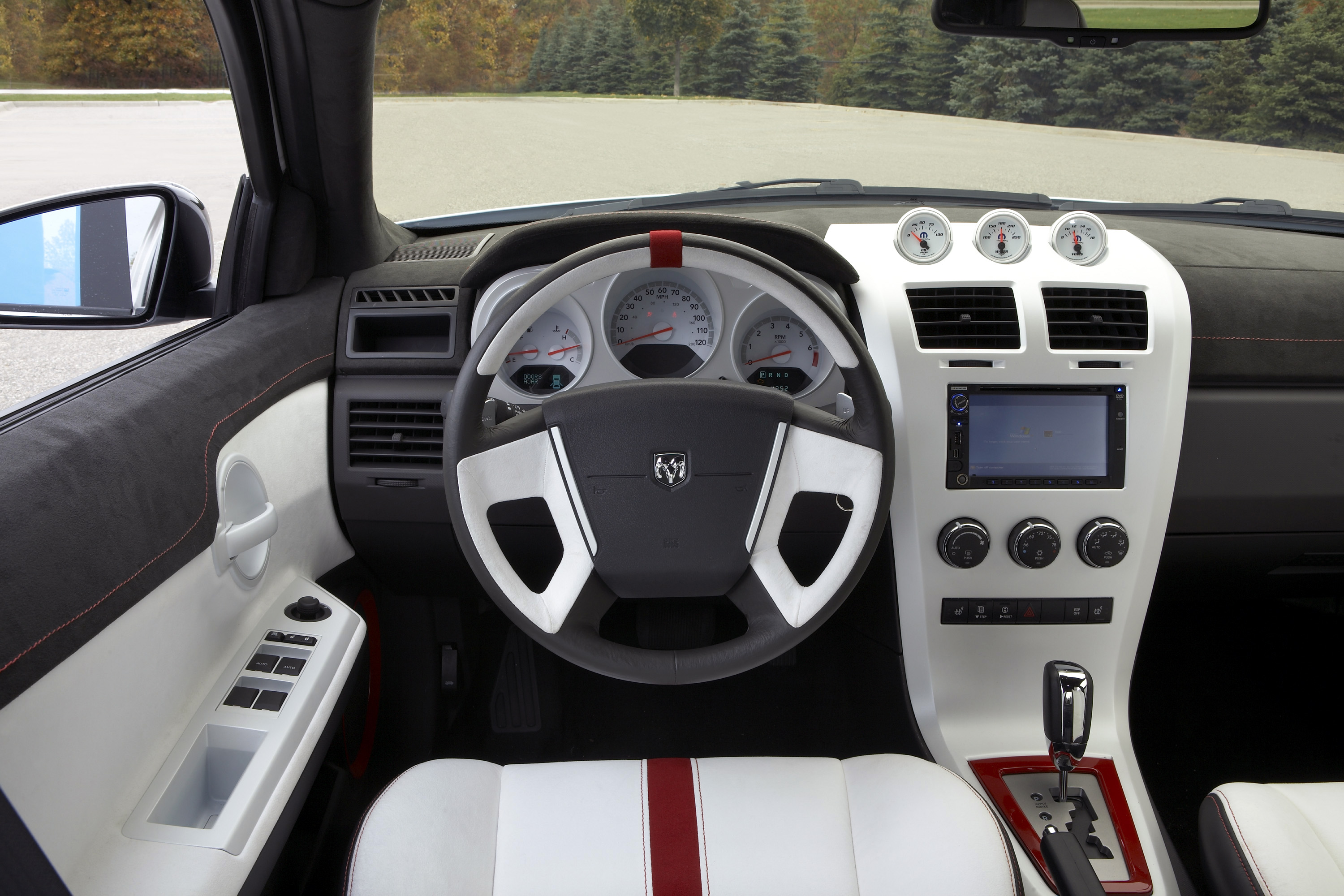 Proseguendo poi a bordo, saltavano all'occhio i notevoli richiami all'esterno, con l'Alcantara nera che venne affiancata da inserti e rivestimenti bianchi con dettagli rossi, oltre ad elementi peculiari quali i quattro sedili contenitivi SRT8, i tre indicatori addizionali sulla console centrale o i ben due PC portatili: controllabili infatti rispettivamente dagli schermi touch anteriore e posteriore, trovavano posto a bordo due computer Azentek, i quali potevano esser impiegati per mettere a punto la vettura, consultare e modificare i parametri del motore, ed ancora comunicare e condividere i propri setup con altri proprietari di Dodge, o persino con gli ingegneri del marchio tramite delle apposite chat room.
