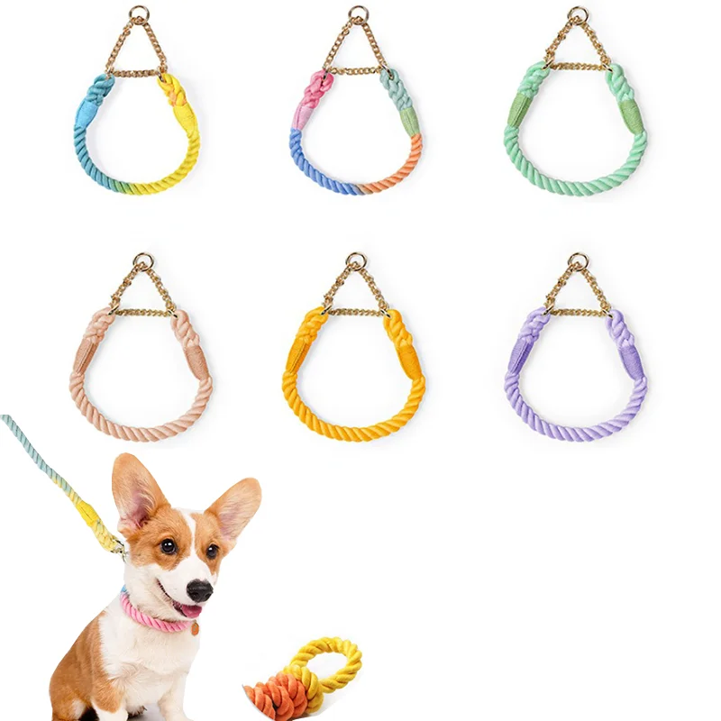 SIdzssYqHere you can buy Dog Collar Adjustable P Chain Comfortable Cotton Braided Multicolor Rope Durable Metal Dog Chain Accessories with free delivery to your post office.