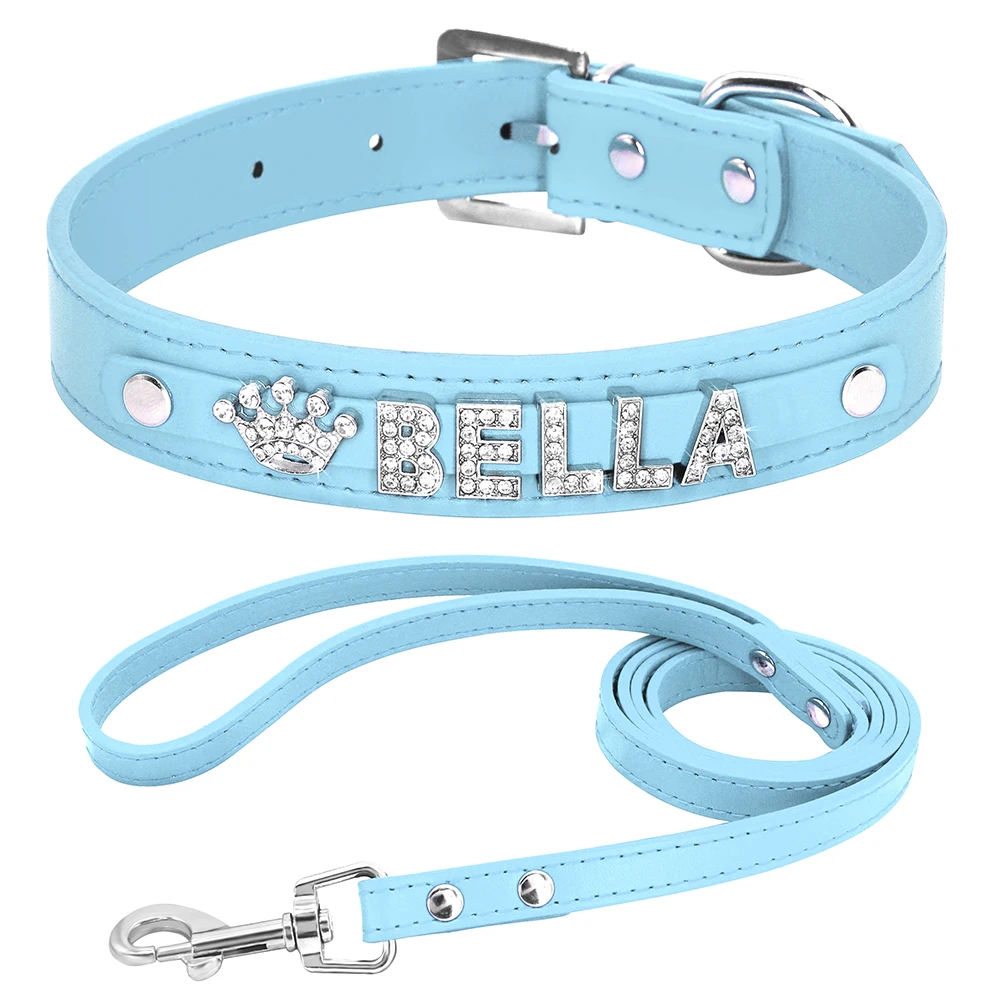 "Dog Collar and Leash Set Personalized Pet Collar Leather Custom Dog Name Collar Adjustable for Chihuahua French Bulldog" * Buy Now Just For 10$