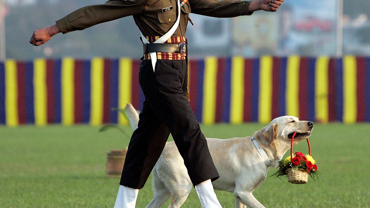 Skillful puppy is showing something hot