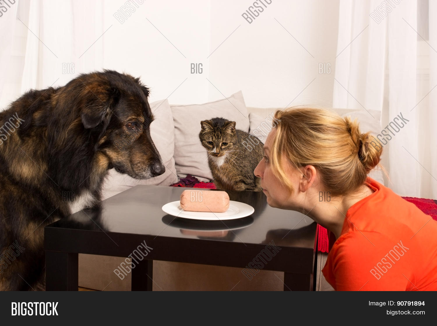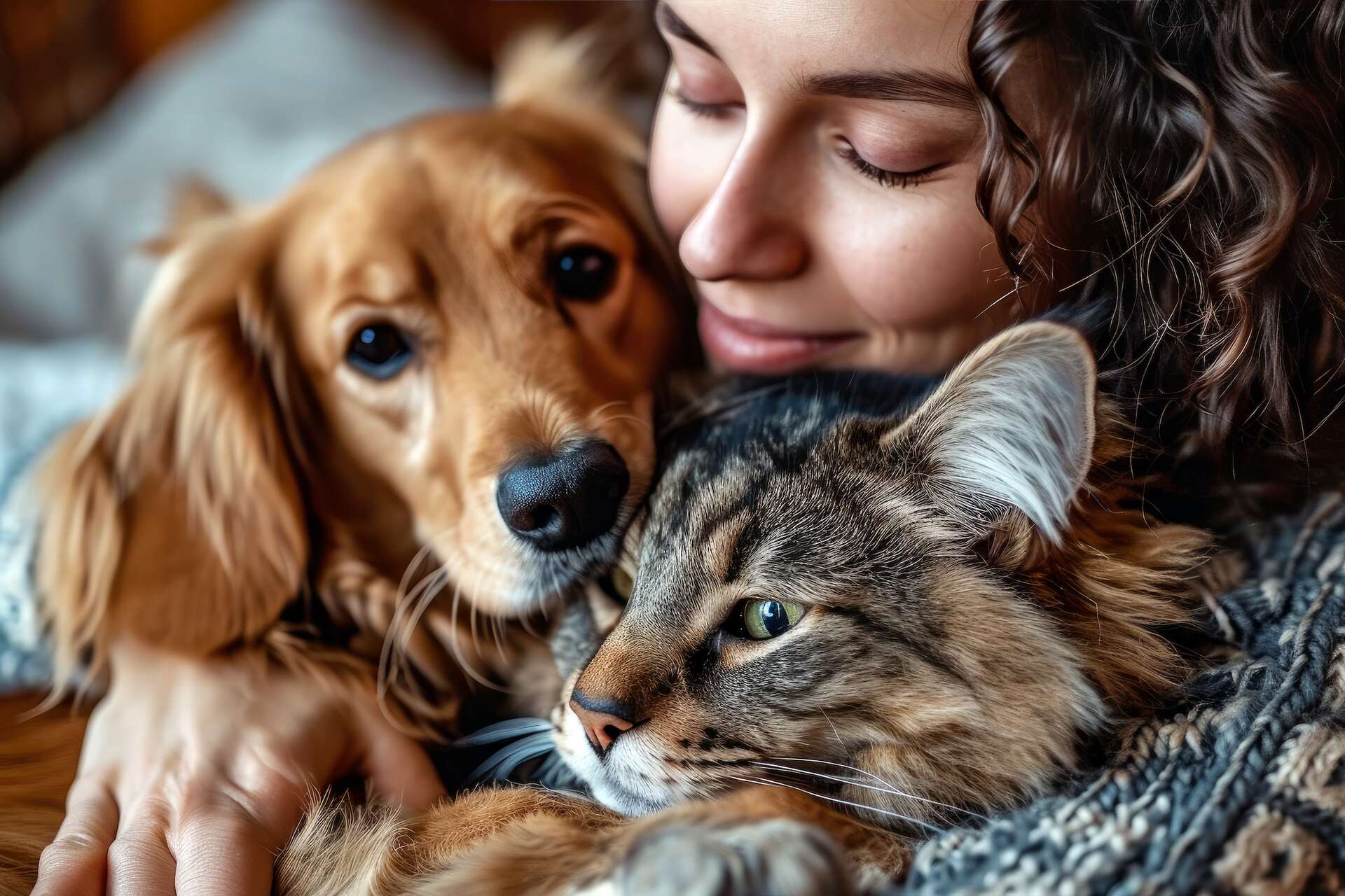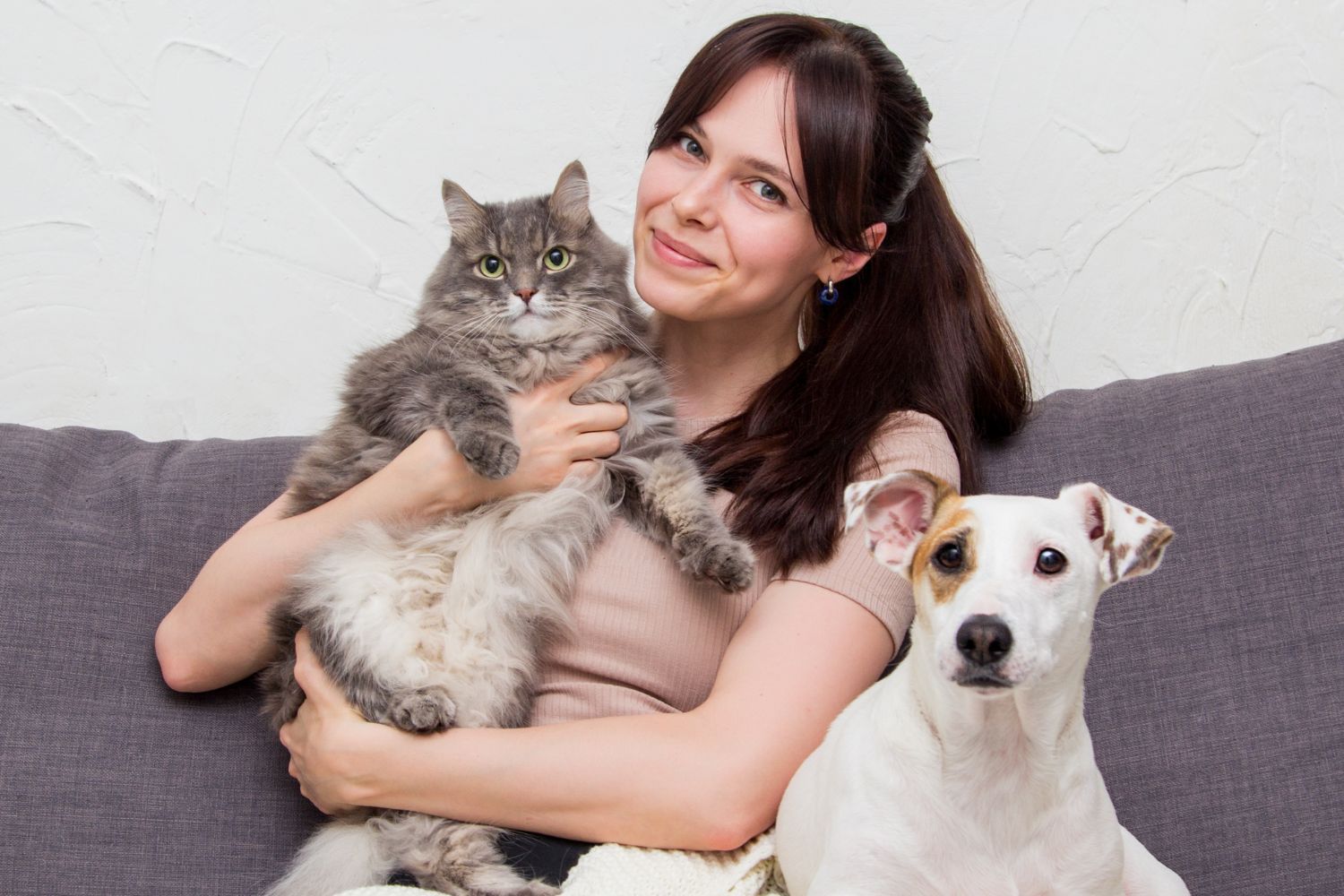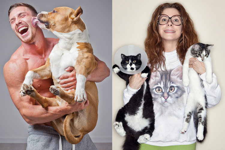 Dog cat woman