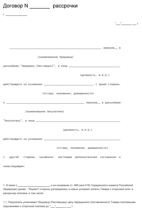 Договор Рассрочки Товара Для Магазина Образец