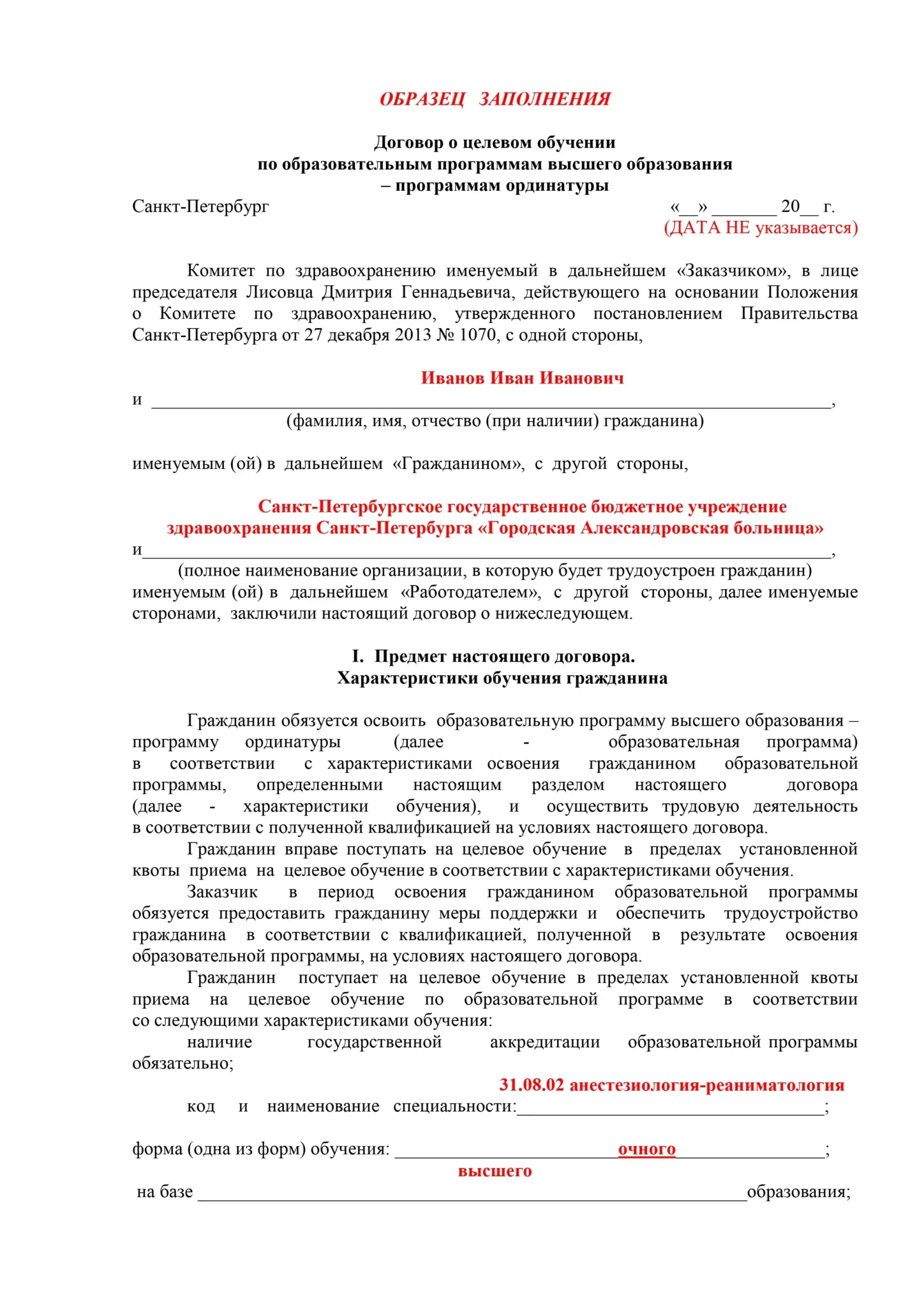 Договор целевого обучения пример