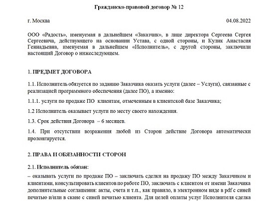 Договор гпх при устройстве на работу образец