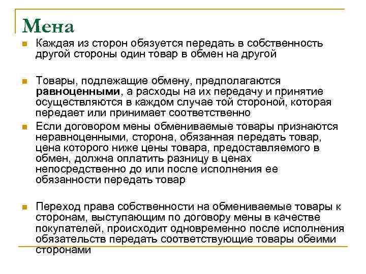 Договор мены деньги