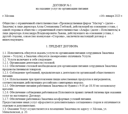 Договор на оказание услуг по питанию образец 86 фотографий