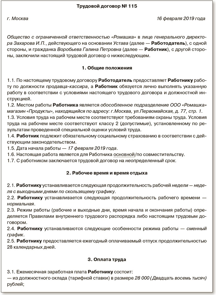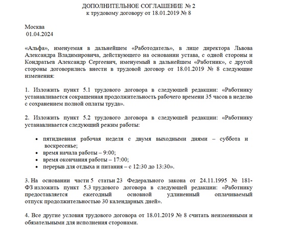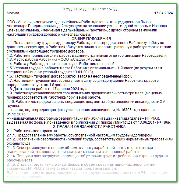 Договор с инвалидом 3 группы образец