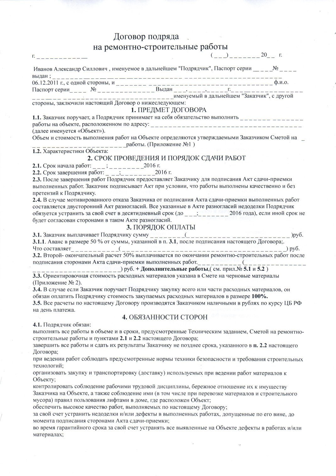 Договор с маляром