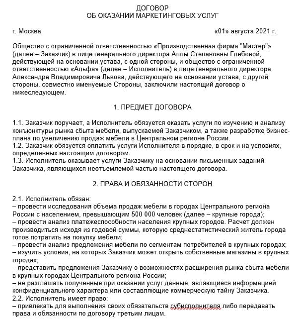 Договор услуг по упаковке