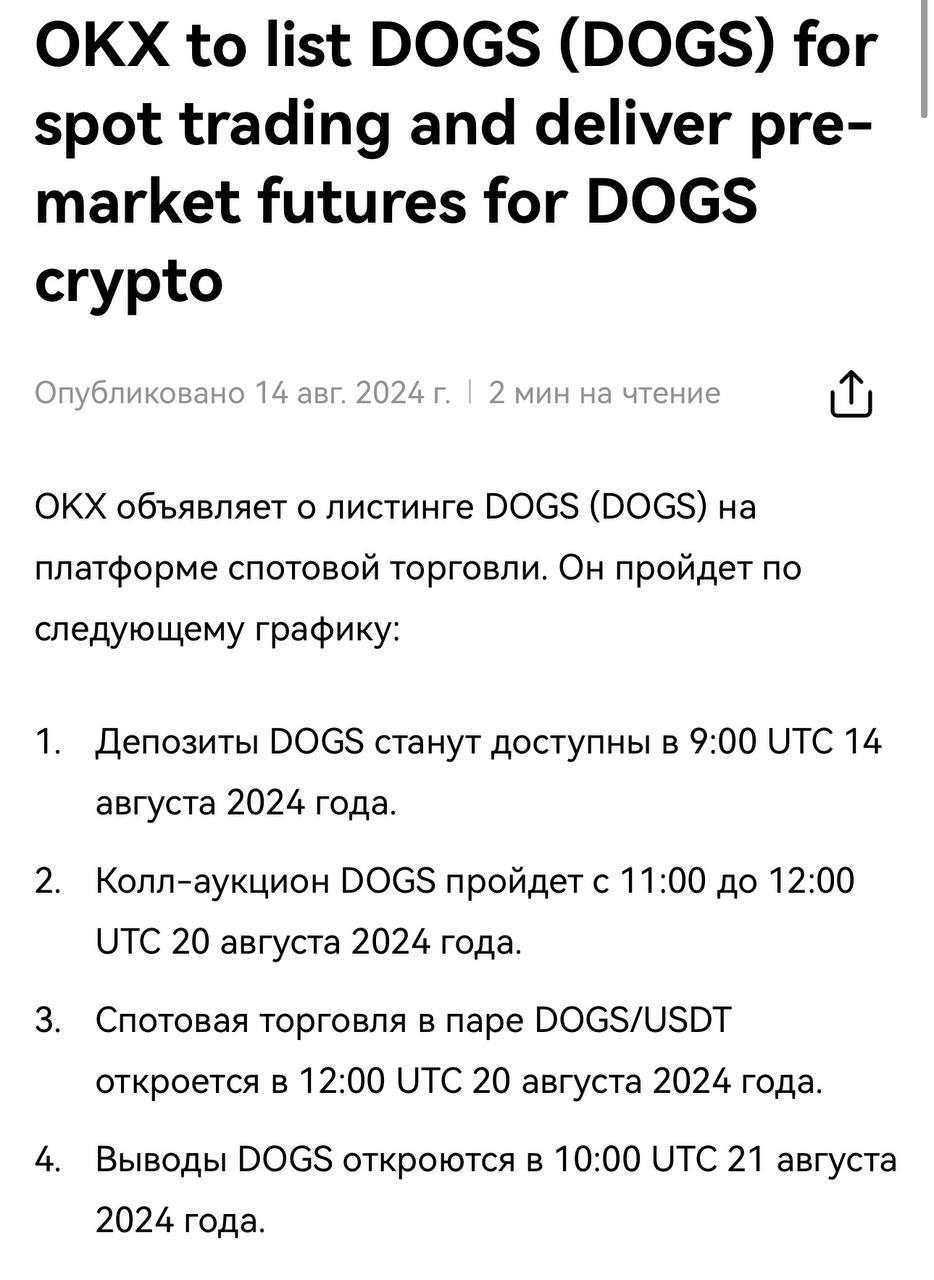Dogs криптовалюта листинг