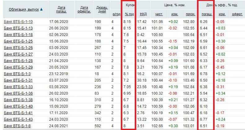 Доход облигаций втб