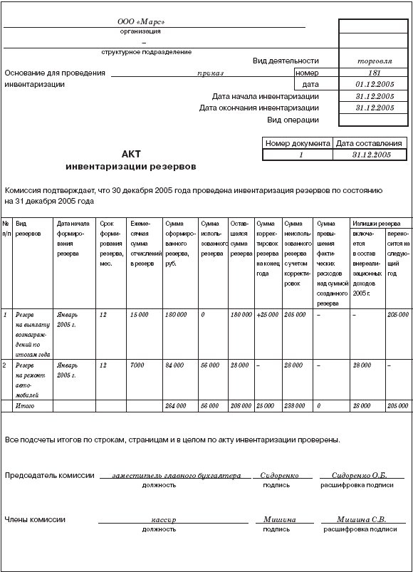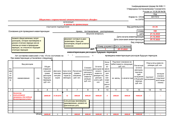 Доходы будущих периодов инвентаризация