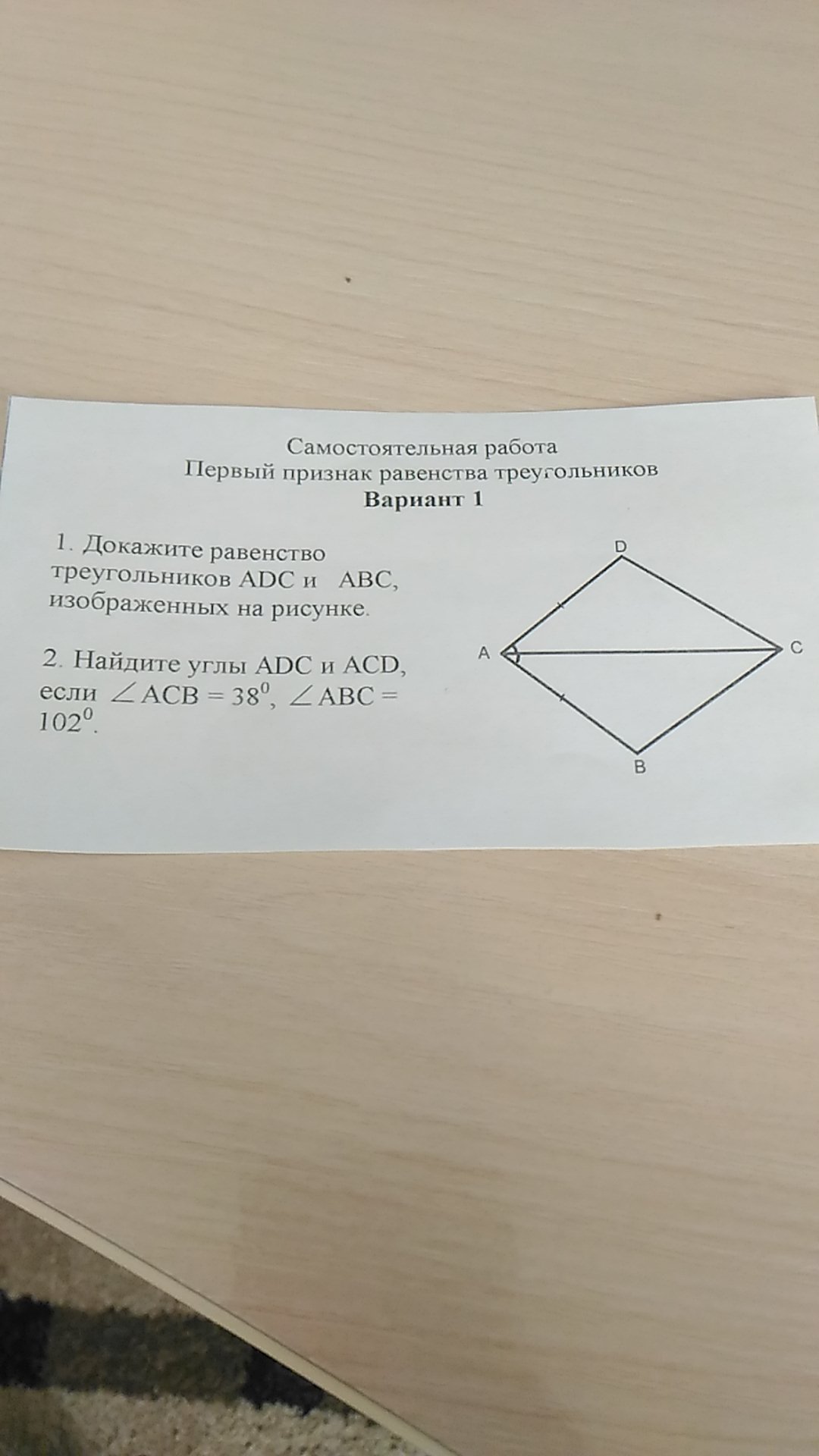 Доказать треугольник abc равен треугольнику acd 113 фото