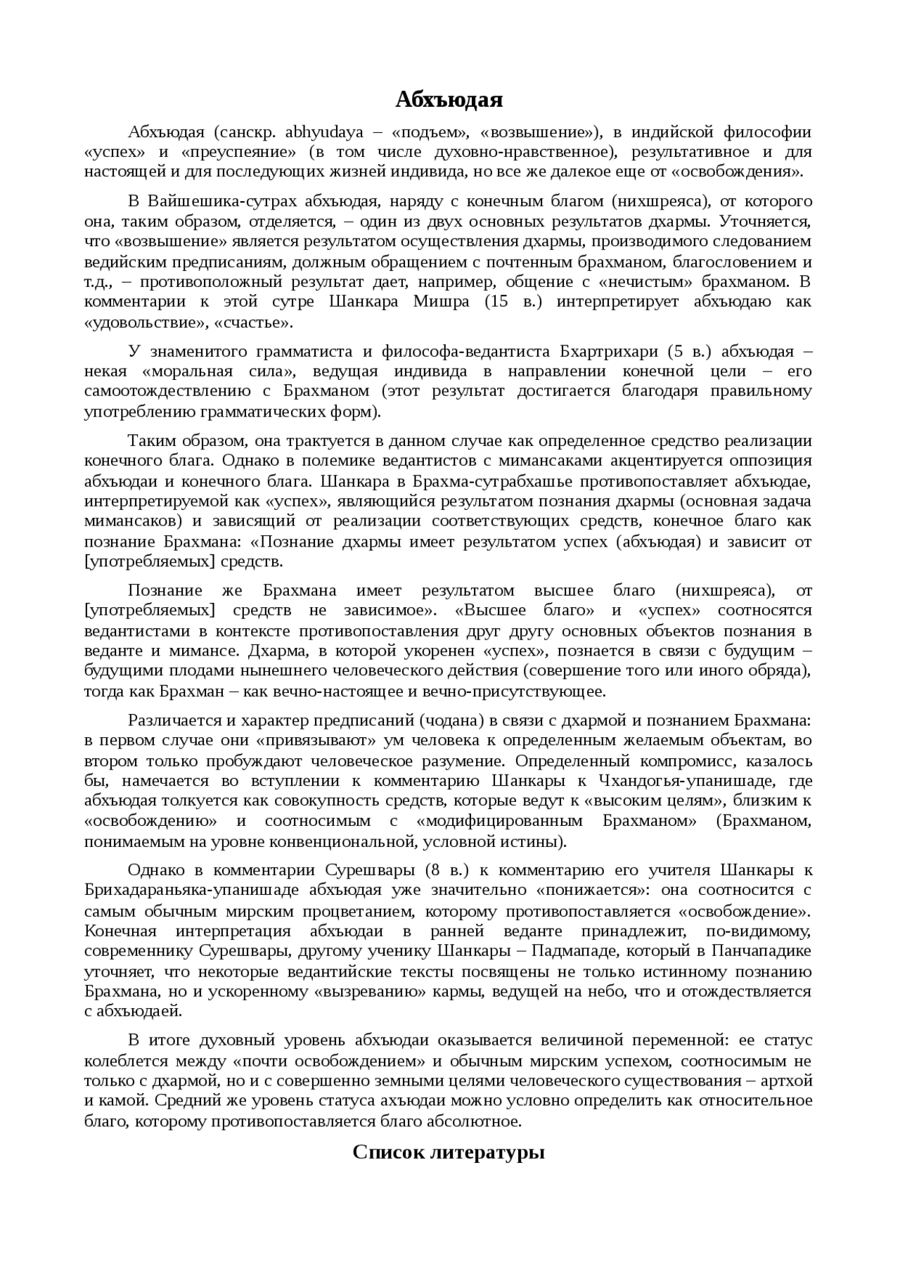 Абхъюдая (санскр . abhyudaya - «подъем», «возвышение»), в индийской философии «успех» и «преуспеяние» (в том числе духовно-нравственное), результативное и для настоящей и для . . .