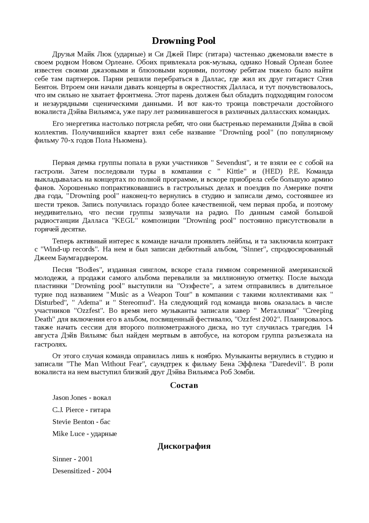 Доклад: Drowning Pool