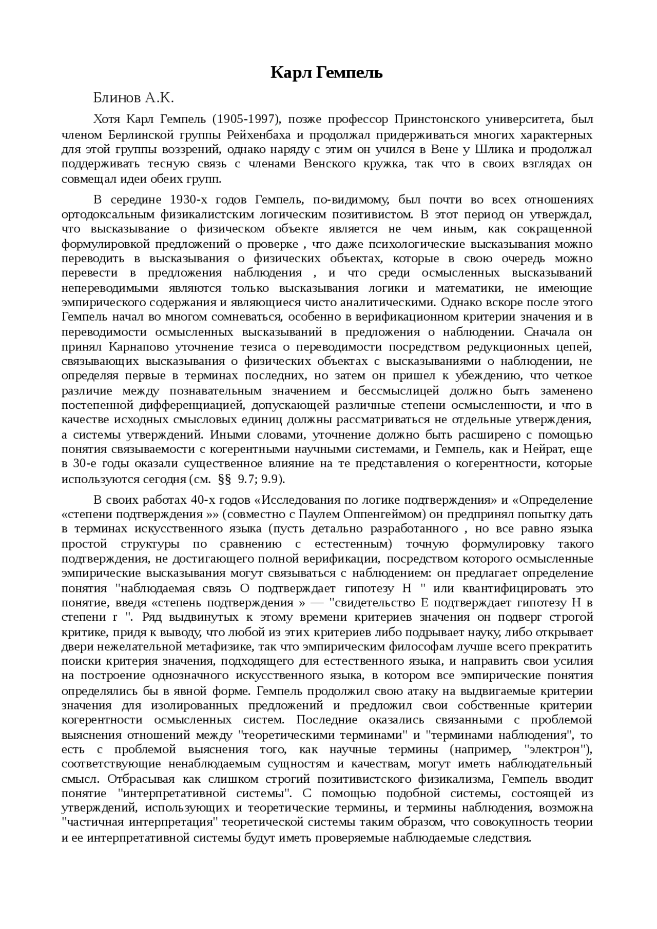 Доклад: Карл Гемпель