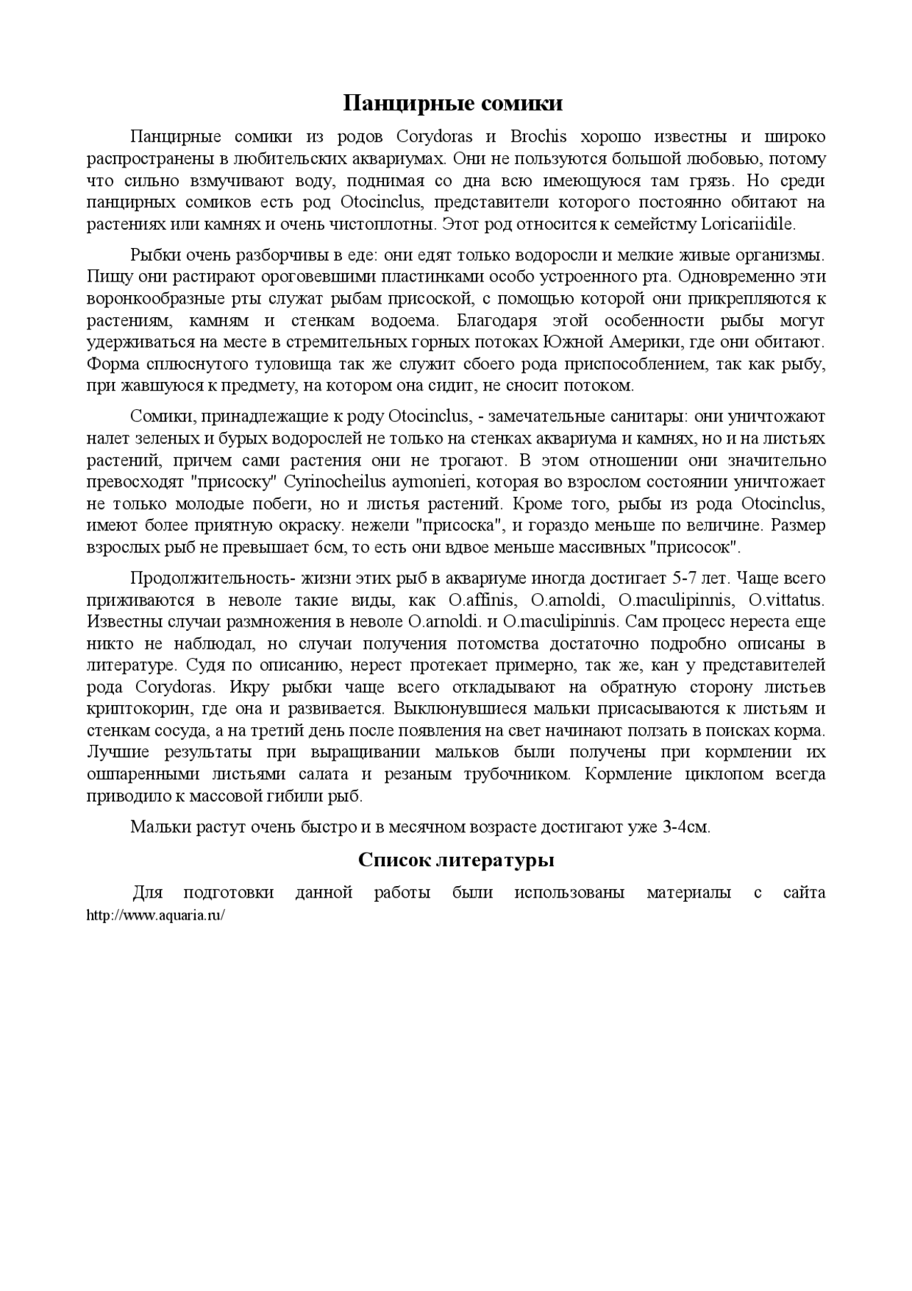 Реферат: Панцирные сомики - Xreferat .com - Банк рефератов . . .