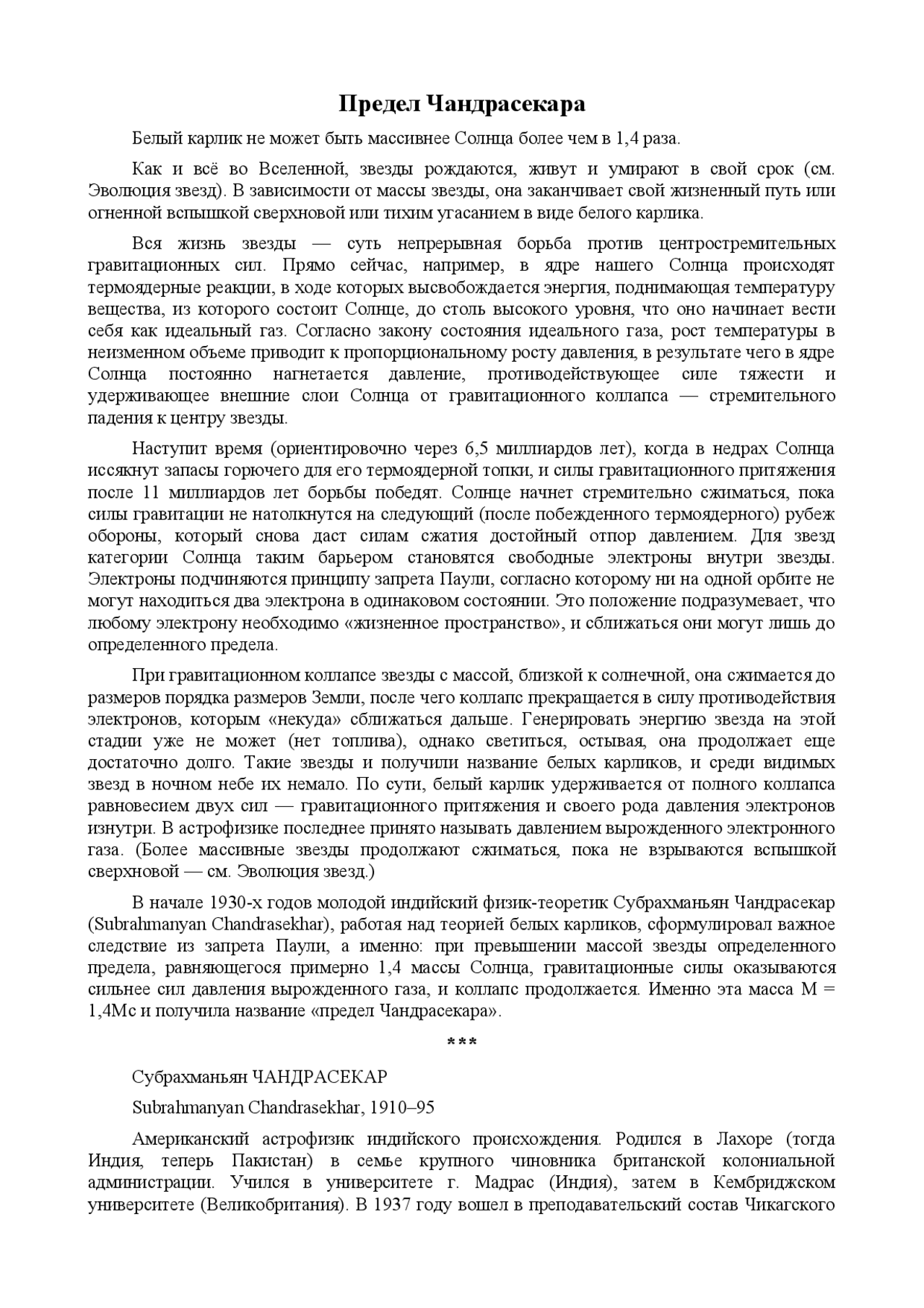 Доклад на тему «Предел Чандрасекара»
