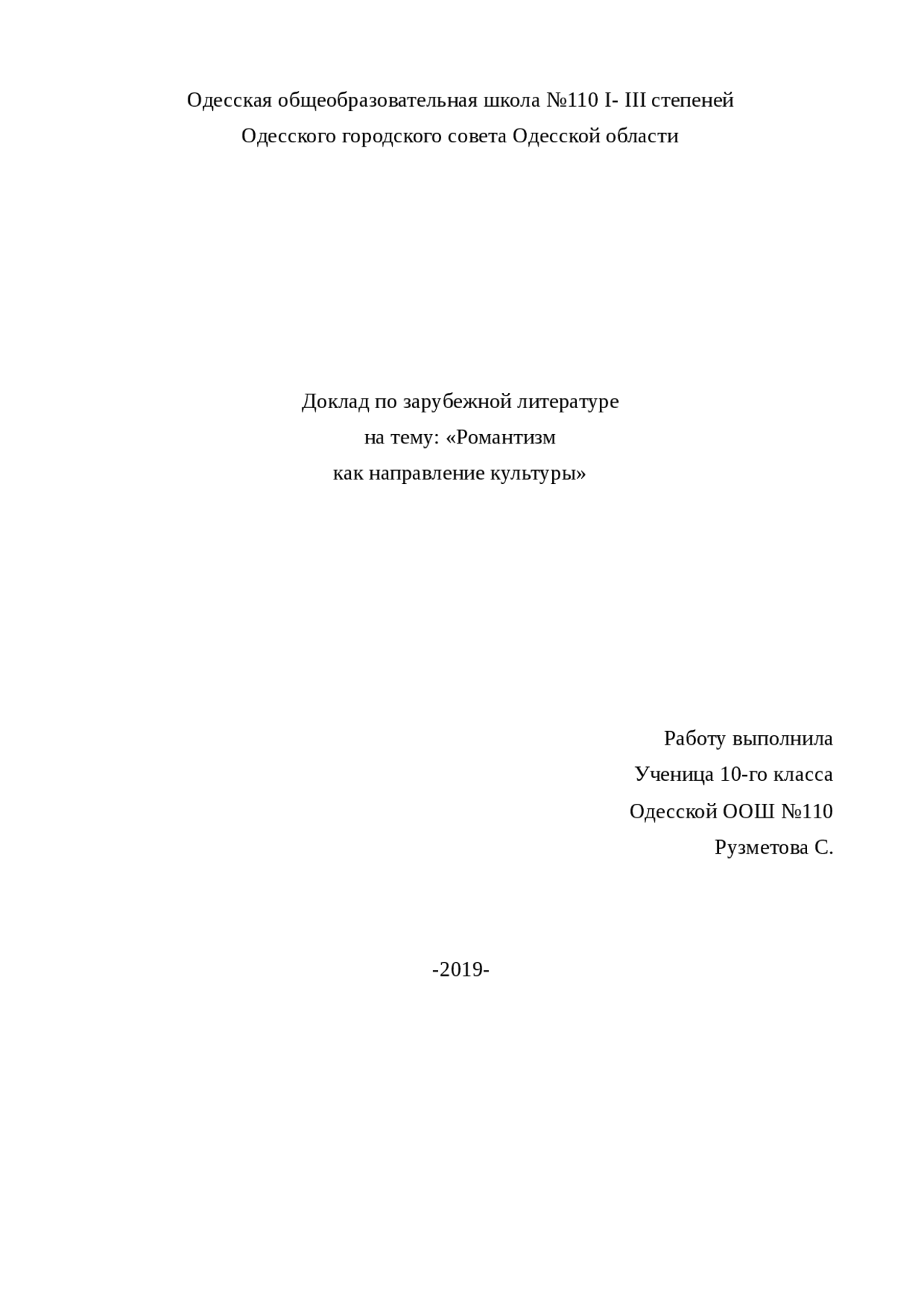 Доклад Романтизм сообщение