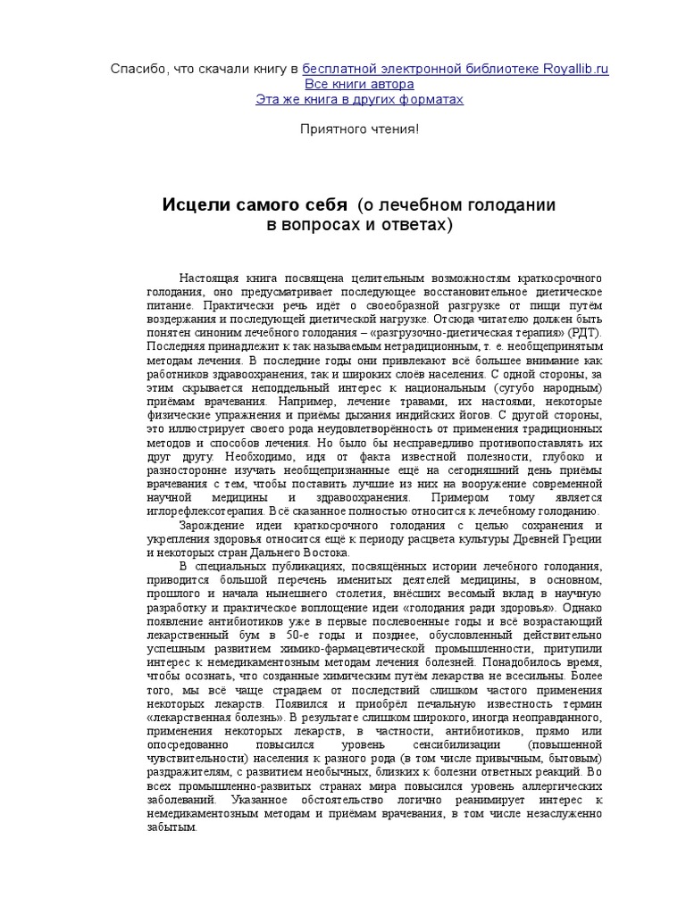 Лечебное голодание (Реферат) - TopRef .ru