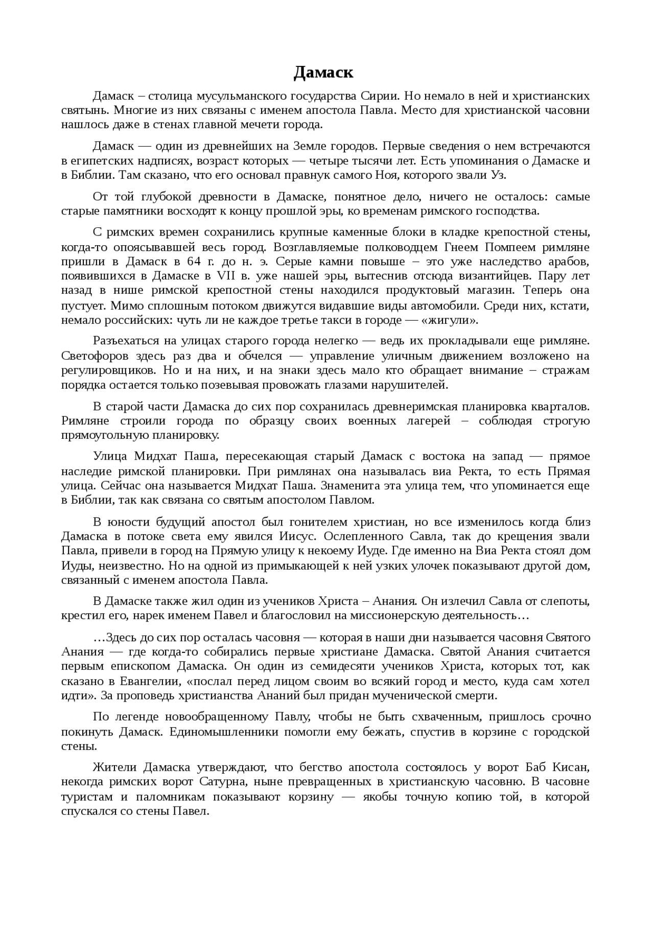 Доклад на тему «Дамаск» . Научные Статьи .Ру / Примеры / Доклады / География / Доклад на тему «Дамаск» . Дамаск — один из древнейших на Земле городов . Первые сведения о нем встречаются в египетских надписях, возраст которых — четыре тысячи лет . Есть упоминания о Дамаске и в . . .
