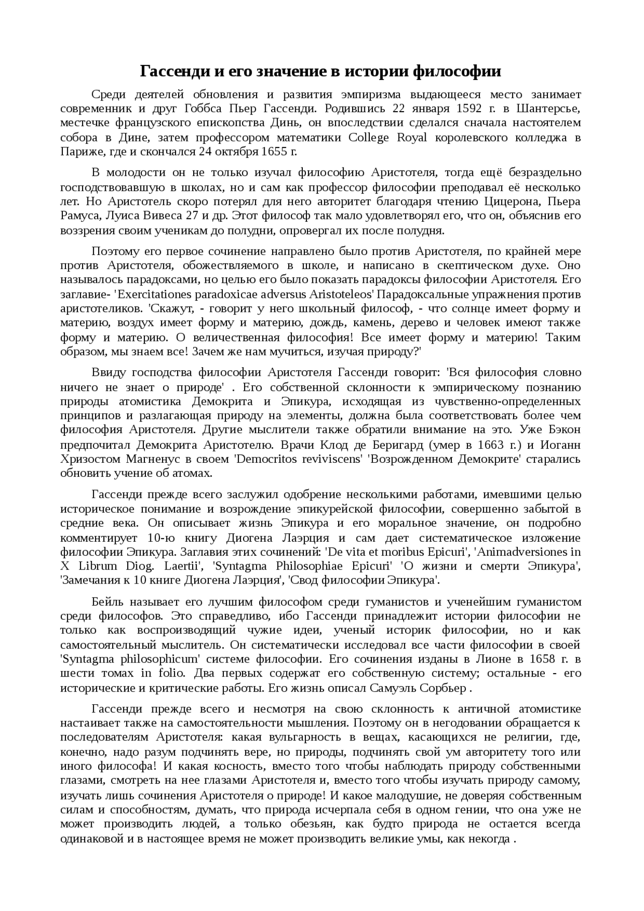 Гассенди и его значение в истории философии . Доклад по философии . 6 Кб / 2 стр / 658 слов / 4072 букв / 17 апр 2018