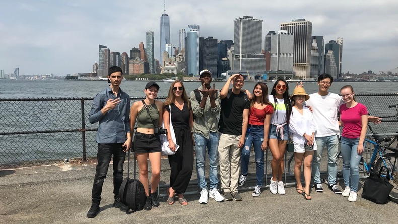 The are 5 boroughs in New York - Manhattan, Brooklyn, Queens, the Bronx, and Staten Island . Manhattan is an island just 13 miles long and 2 miles wide . It is the center of American finance, advertising, art theatre, publishing, fashion - and much more . Manhattan is divided into the East Side and the West Side .