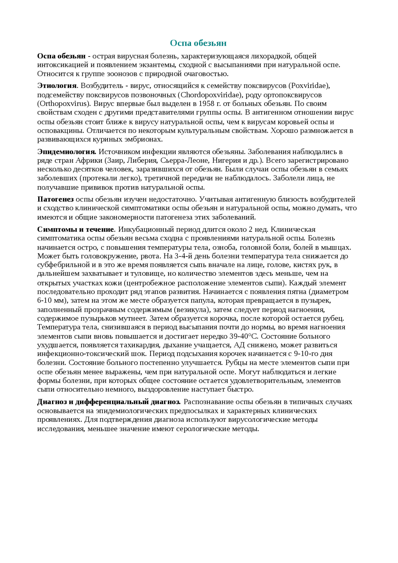 Оспа обезьян . Доклад по медицине, физкультуре и здравоохранению . 5 Кб / 1 стр / 395 слов / 2804 букв / 19 мар 2002