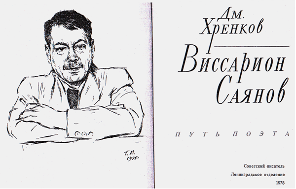 И . Гринберг . Саянов Виссарион Михайлович (1903—) — поэт, прозаик . Р . в семье ссыльных в Сибири . Там же провел детство . Был в Красной армии, на советской работе; учился в Ленинградском ун-те .