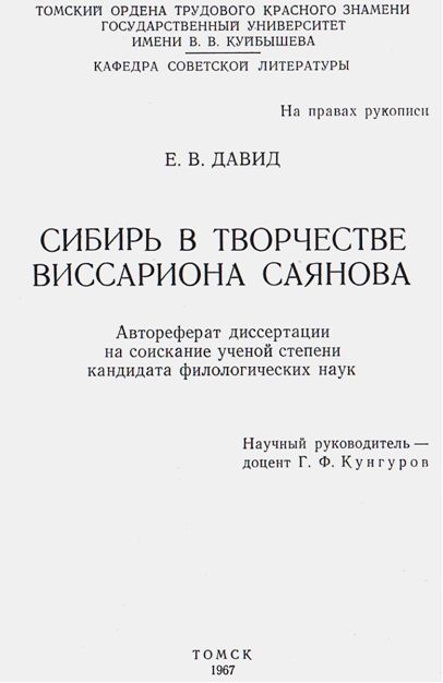 Доклад по теме Саянов Виссарион