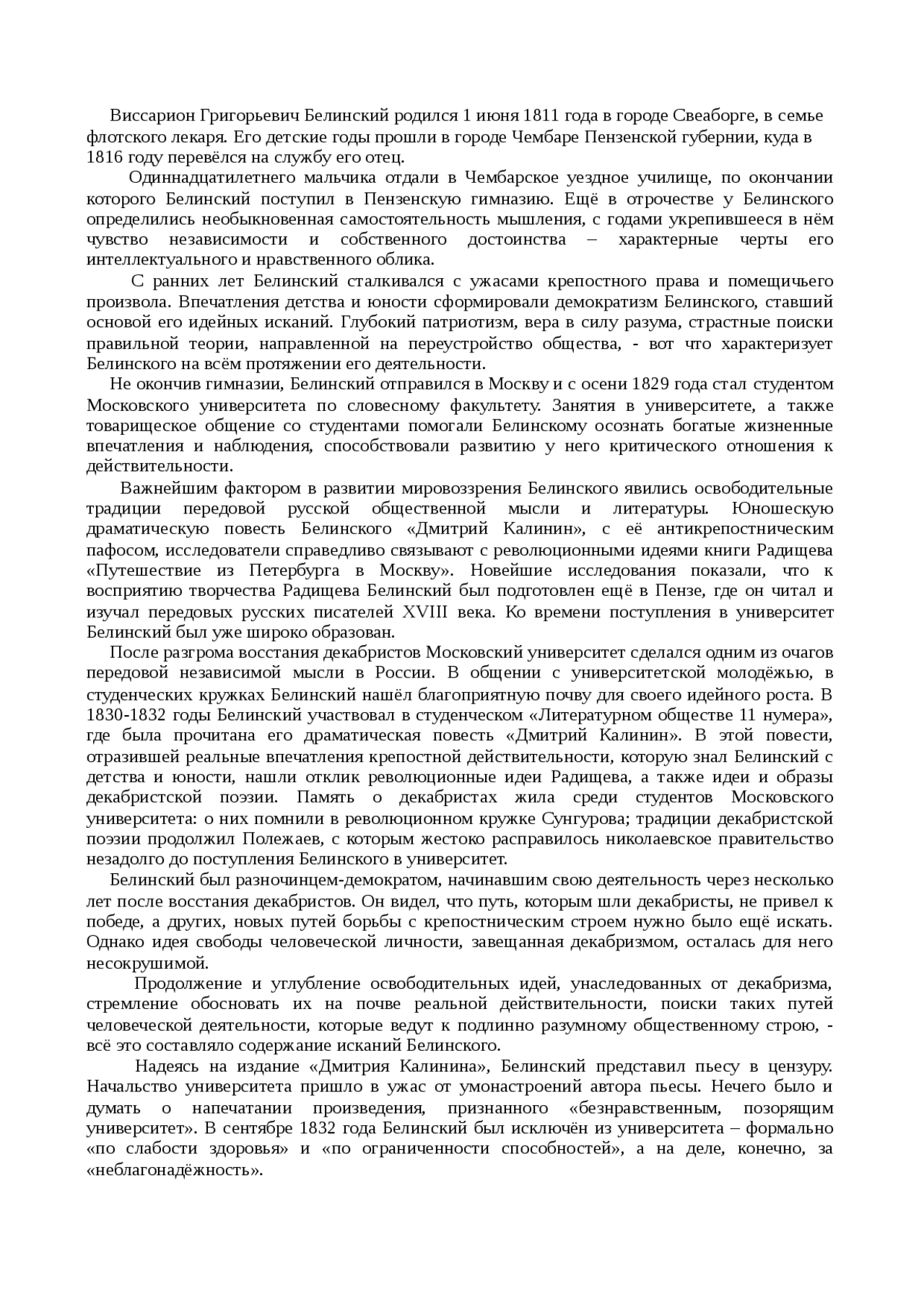 Доклад на тему "Виссарион Григорьевич Белинский" скачать . . .