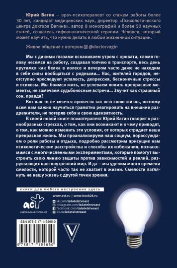 В своей новой книге психотерапевт Юрий Вагин говорит о разнообразных стрессах, о том, как они возникают и к чему приводят, о том, как можно изменить эти условия, от которых страдает наша прекрасная жизнь .