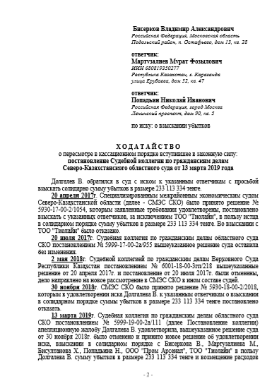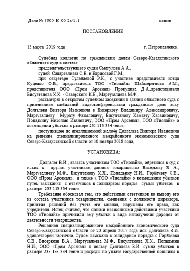 Ниже прилагаемые документы, а также ходатайства и официальные письма на имена акима СКО Кумара Аксакалова и Президента РК Касым-Жомарта Токаева, предоставлены в распоряжение редакции бизнесменом Долгалевым В.И.