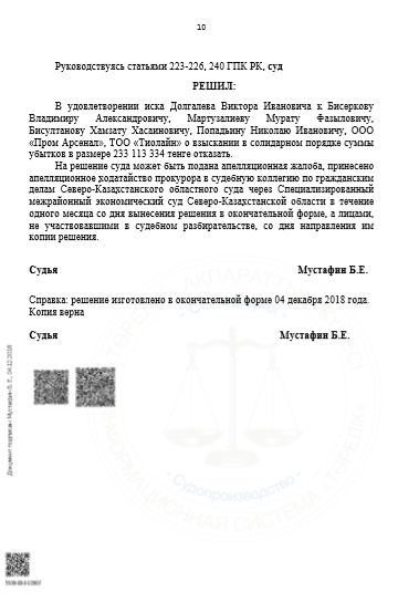 Решение специализированного межрайонного суда СКО от 30.11.2018г.