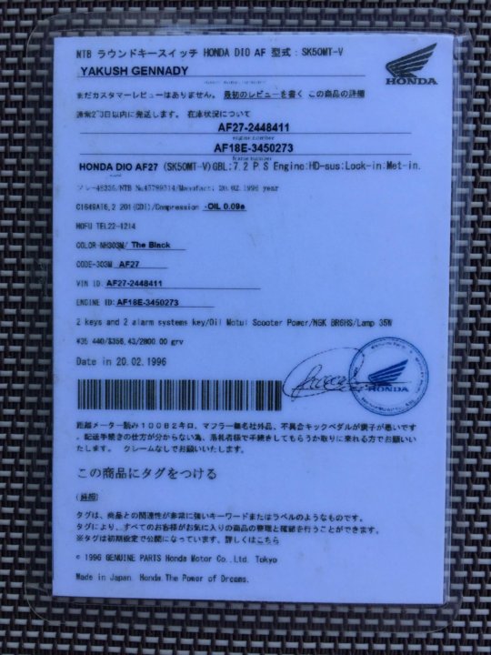 Документы хонда дио 109 фото