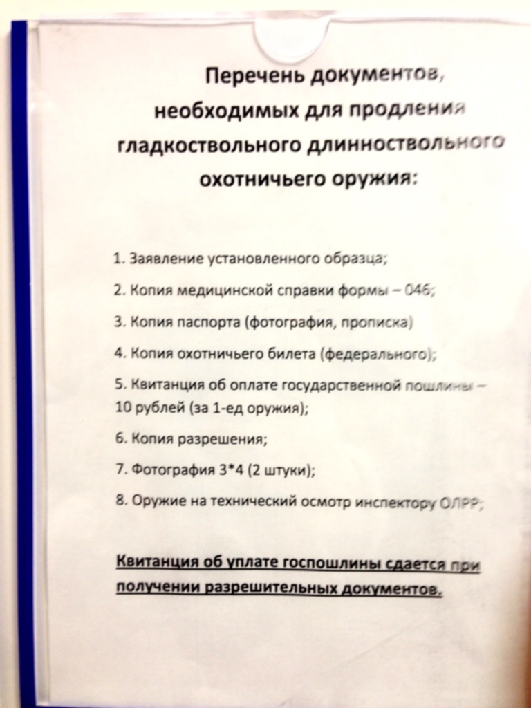 Документы продление ружье