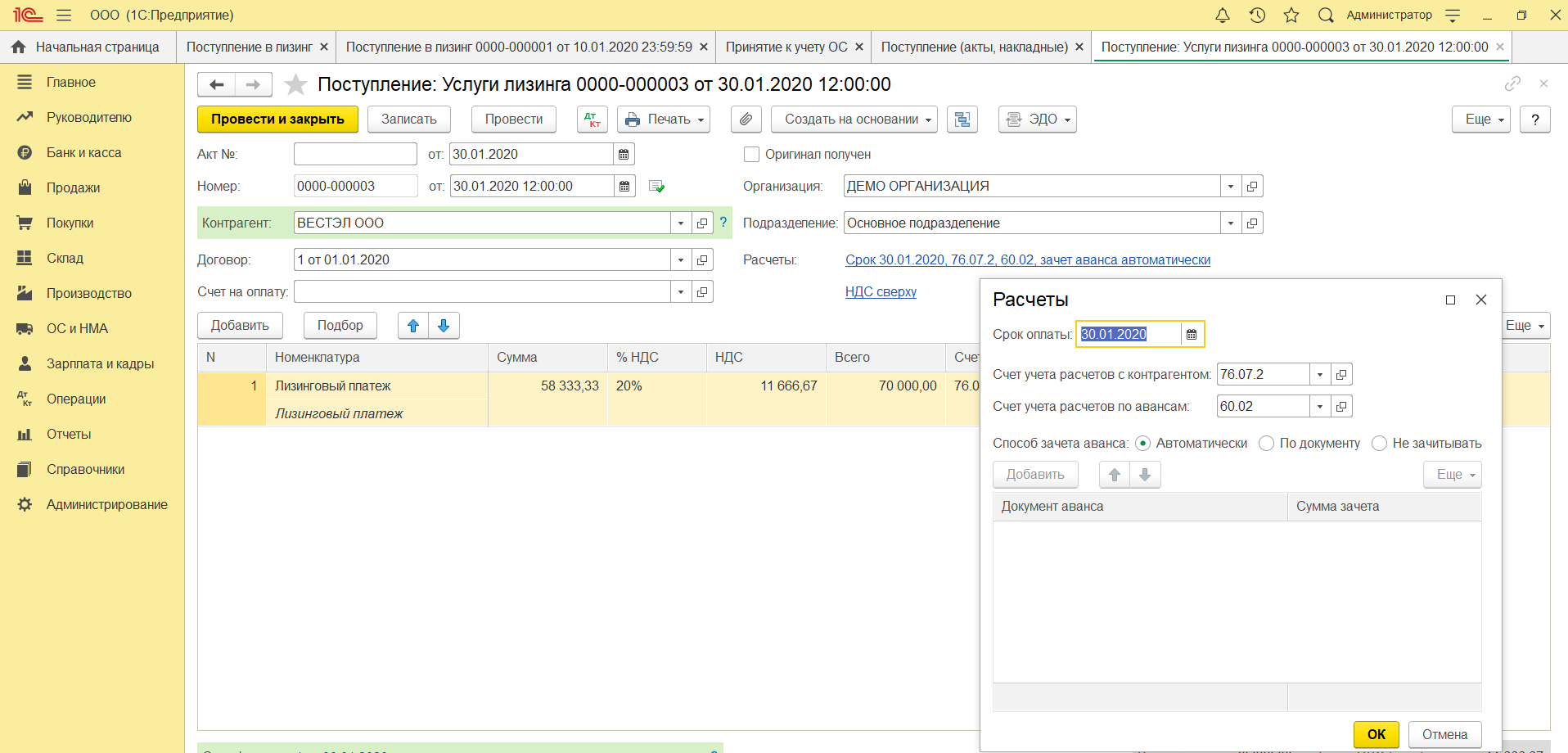 Документы в 1с по лизингу