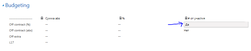 В секции Budgeting внутри карточки промо долевые акции помечаются в третьем столбце: