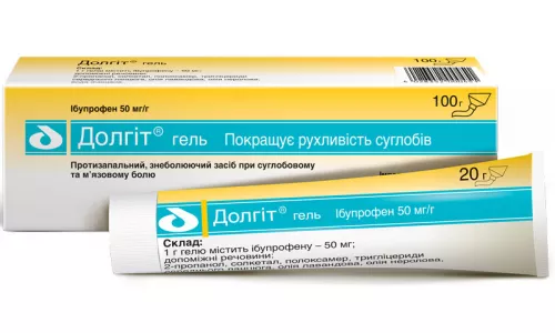 Гель Долгит 5% для применения наружно - мягкая прозрачная масса без цвета, имеющая характерный запах . Реализуется гель в тубах, внутри покрытых защитным лаком, по 20 г, 50 г и 100 г . Туба укупорена мембраной и оснащена пластиковым колпачком . В картонную пачку вкладывается одна туба . Фармакологическое действие