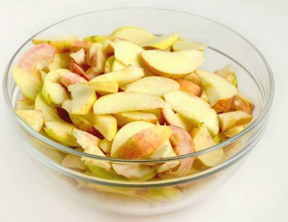Дольки яблок замочить в соде