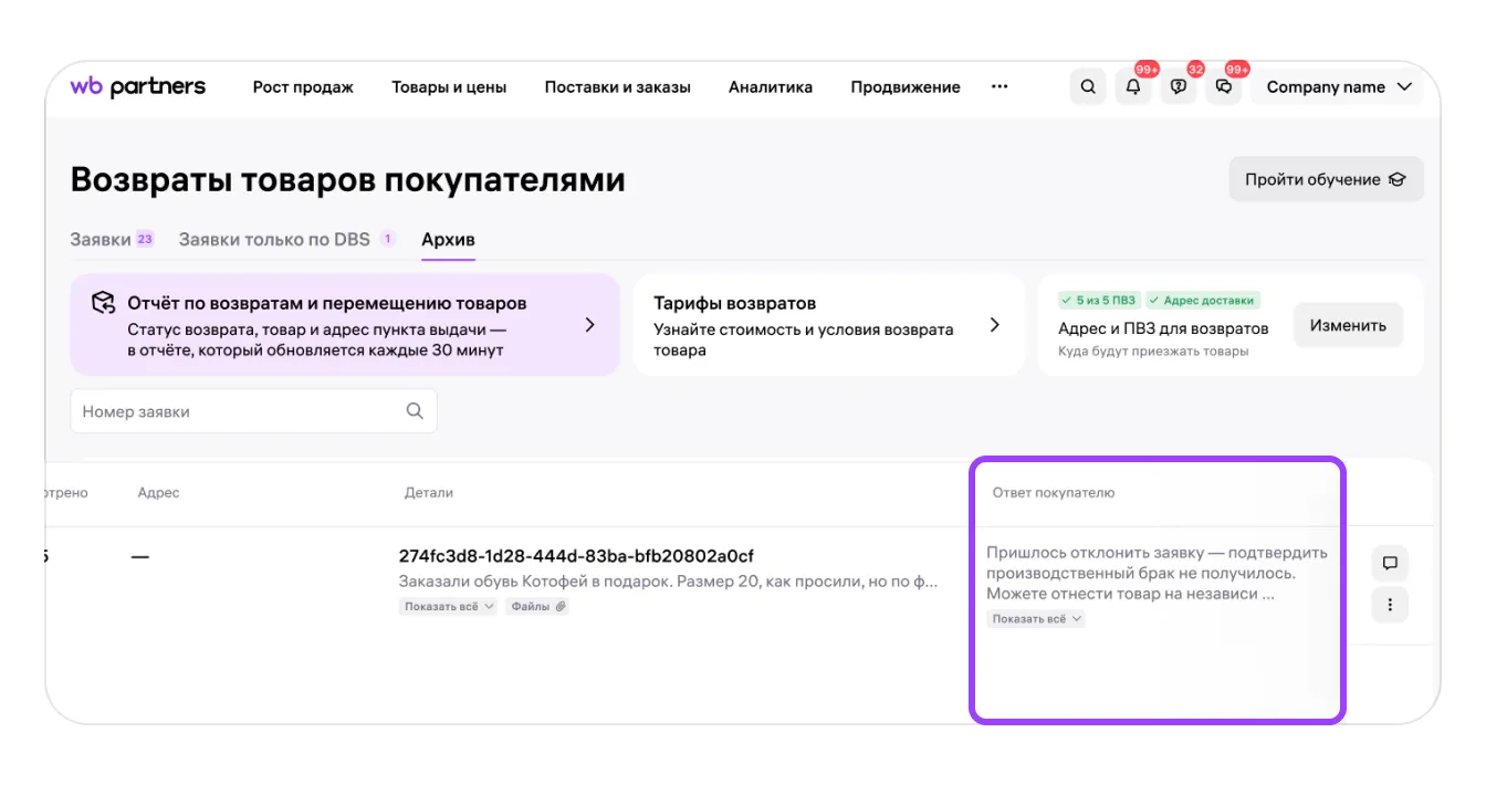 Долями возврат товара