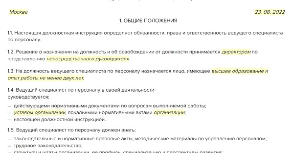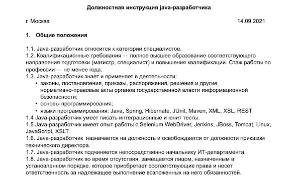 Должностная инструкция ведущего программиста