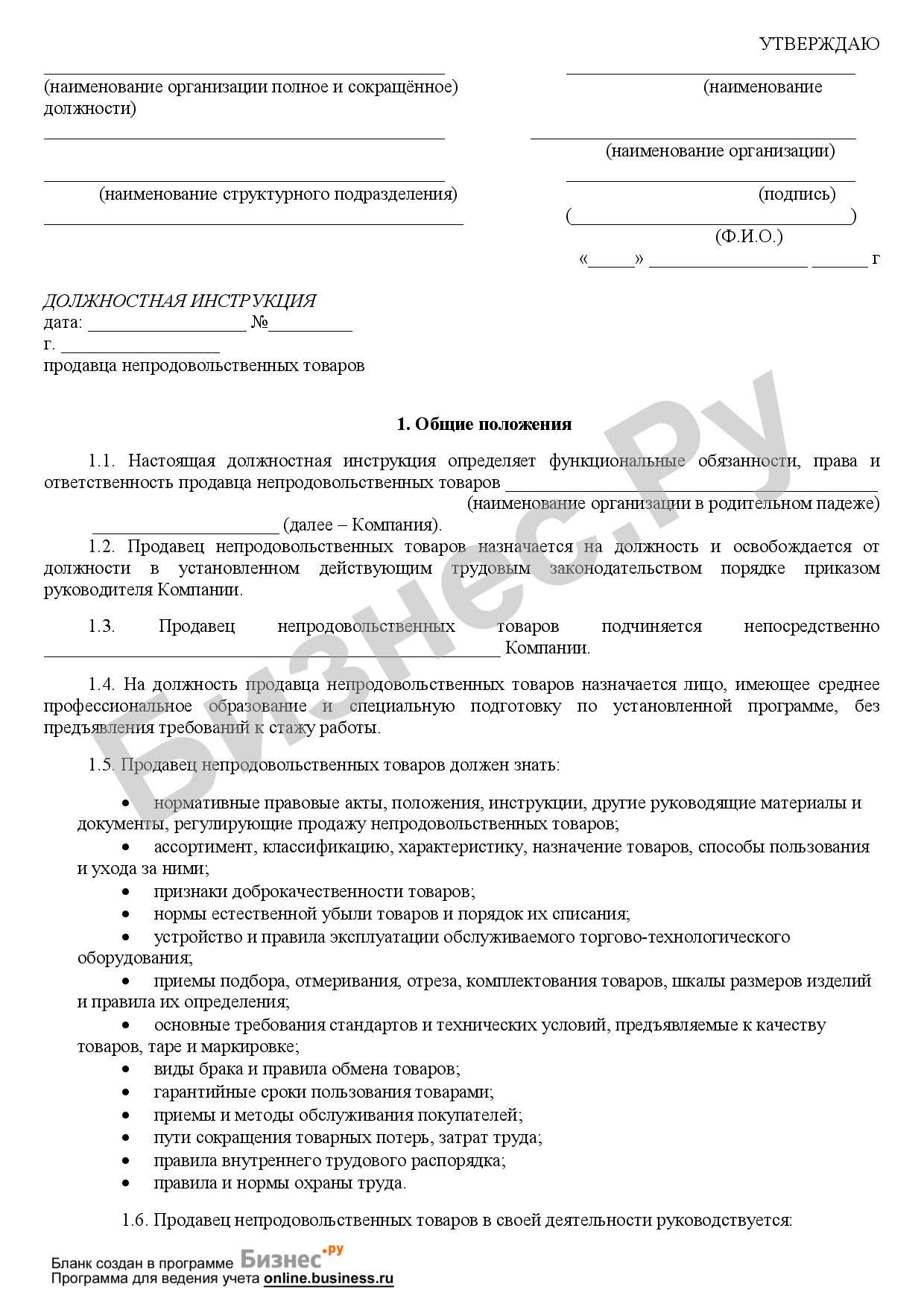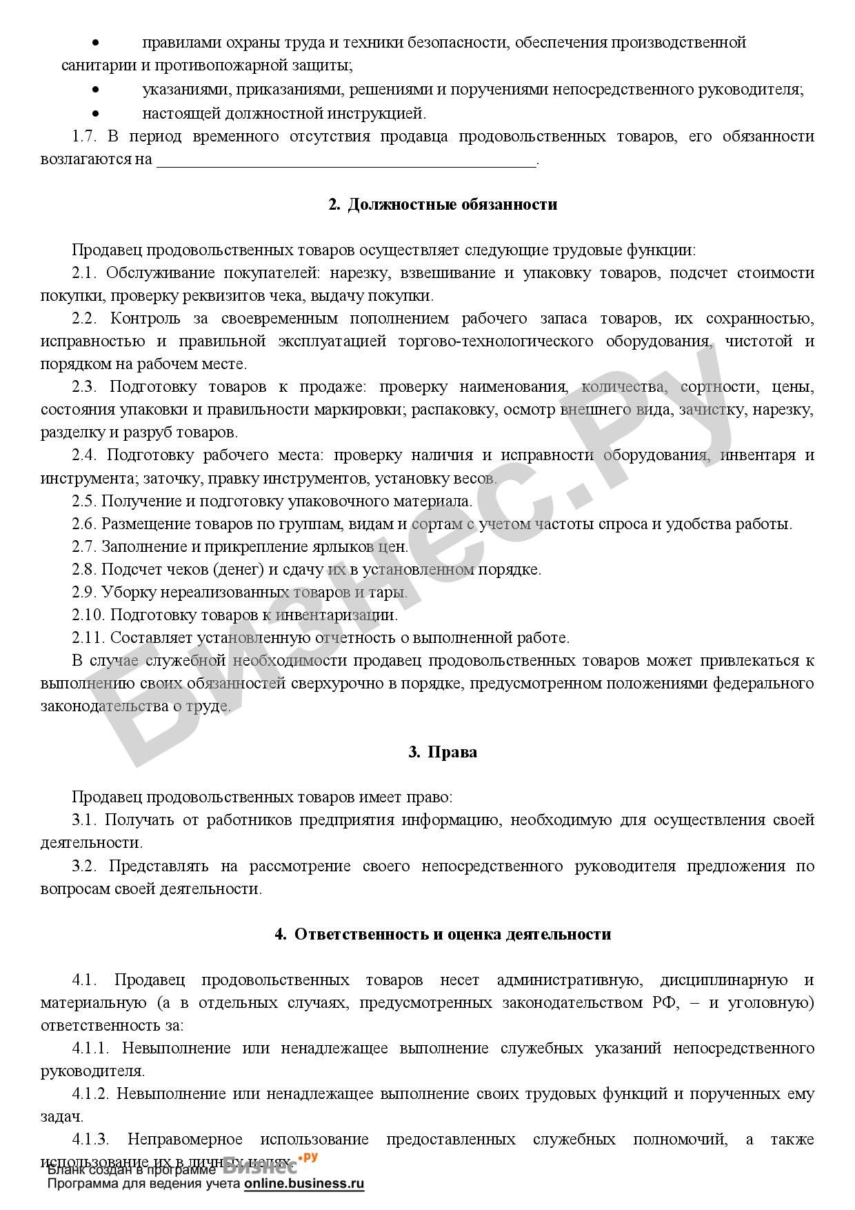 Должностная старший продавец