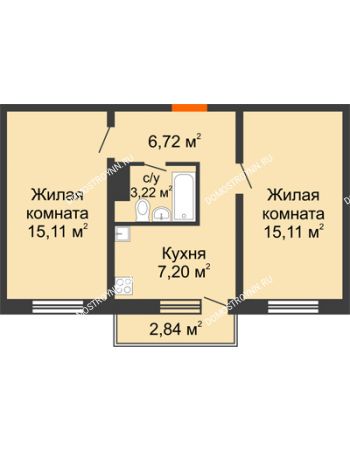В следующем проекте рассмотрим квадратный дом 7,5*7,7, площадь которого составляет 52 кв . м . Фасад постройки выглядит очень аккуратно благодаря симметричному расположению окон .